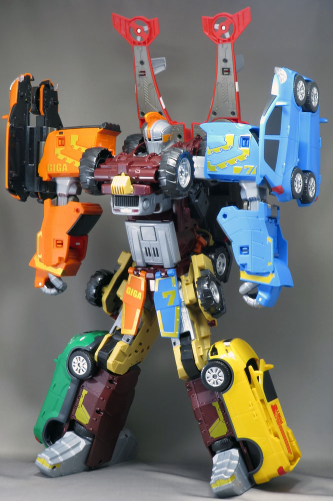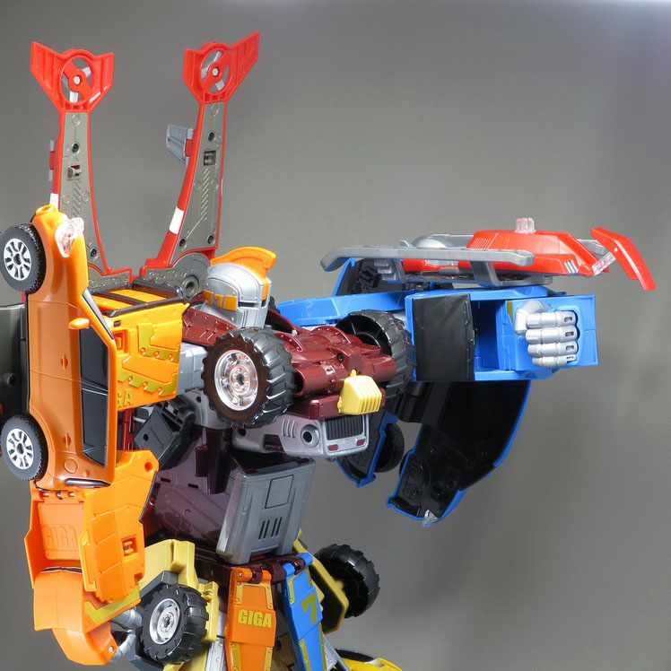 竟然學日本人搞很多東西在金剛(機器人)的最終合體型態身上,還有塑膠材質料、塗裝顏料、風格、玩具盒外觀表現都很陽春和山寨的樣子,