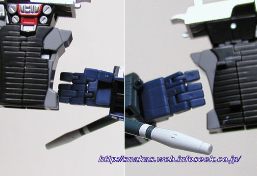 站長測試把傳奇級巨無霸(Megatron)手槍型態給MP星星叫(Starscream)拿在手中,